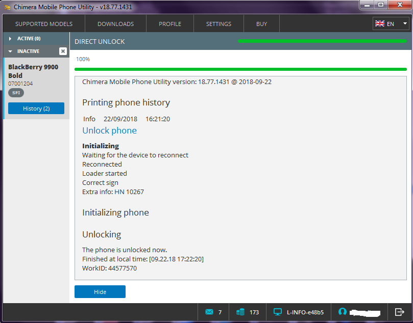 Chimera Mobile Phone Utility version: 18.77.1431 @ 2018-09-22