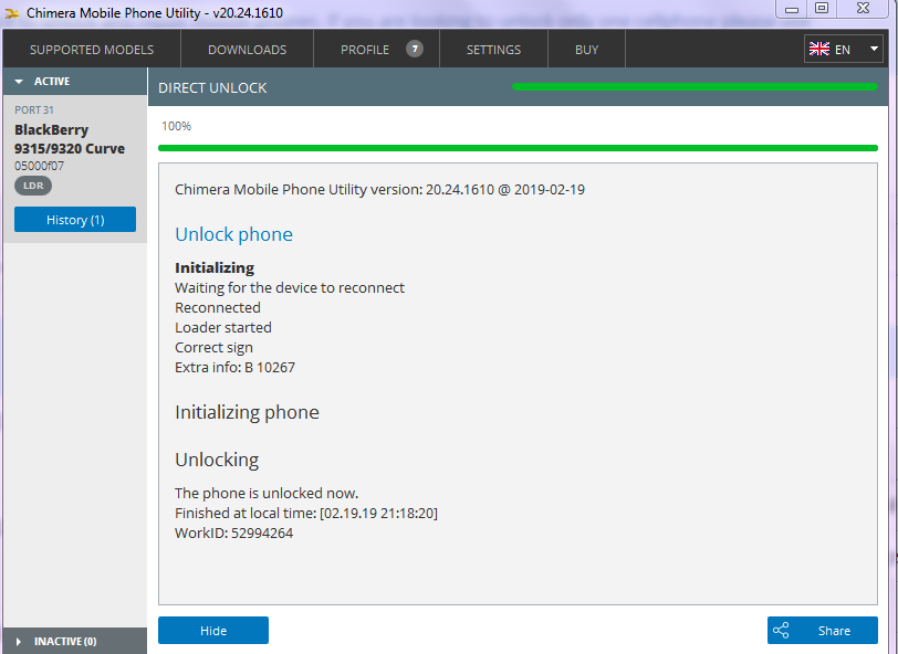 Chimera Mobile Phone Utility version: 20.24.1610 @ 2019-02-19